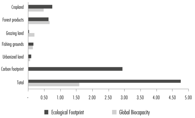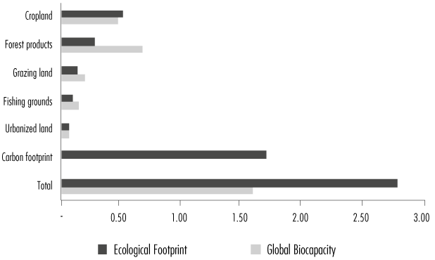 Figure 1 Global EF per capita and global biocapacity per capita