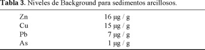 En la Tabla 3 se puede ver el cambio promedio de la concentración Pb, Cu, Zn y As en las estaciones muestreadas.