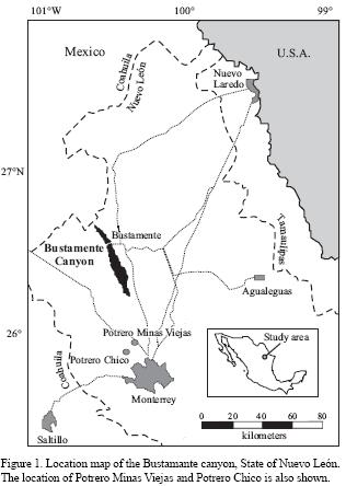 The diagenetic history of the Cupido Formation is poorly known. Only a few studies have been conducted to understand the diagenetic changes in the Cupido carbonate platform. Based on detailed petrography, Guzman (1974) identified effects of marine, meteoric and burial diagenesis on the inner platform facies of the Cupido Formation at the Cortinas Canyon, State of Nuevo León. In their classic paper on the definition of saddle dolomite, Radke and Mathis (1980) included dolomite samples of the Sligo Formation which is the equivalent of the Cupido Formation in the United States Gulf Coast region. Moldovany i and Lohmann (1984) estimated a 18OPDB value of –2.0‰ and a 13CPDB of +4.0‰ for the original marine carbonate composition for Lower Cretaceous time utilizing carbonate constituents of the Cupido and Sligo formations. Like most ancient carbonate systems, the Cupido platform commonly shows dolo–mitized segments, which are well exposed in northeastern Mexico. Bustamante Canyon is an extraordinary location where the Cupido Formation crops out completely from base to top; and the geometry of the dolomitized bodies can be traced accurately in two dimensions (Murillo–Muñetón, 1999; Murillo–Muñetón and Dorobek, 2003; Figures 1 and 2). Distribution and geometries of the dolomitized bodies of the Cupido Formation were mapped at Bustamante Canyon by Murillo–Muñetón (1999), who inferred that they could have been the result of deep–burial diagenesis conditions. However, a systematic study of the origin of these dolomite bodies was still lacking. Understanding the diagenetic processes, including dolomitization that affected the evolution of the porosity in the Cupido Formation, can be useful in oil exploration and production activities in the Sabinas Basin.