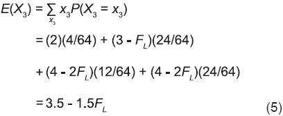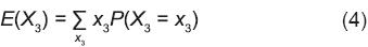 En la Ecuación 4, x3 representa los números de genes NIPD que puede aportar una cruza simple al arreglo genotípico del SinCS, y P(X3 = x3) es la probabilidad de que ocurra el valor x3 cuando se efectúa el fenómeno visualizable como la toma de una muestra aleatoria con reemplazo de tamaño 3 del conjunto que forman los 4 genotipos que produce la cruza simple A1A2 x B1B2. El muestreo de tamaño 3 puede producir los tipos de resultados siguientes: