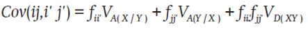 La covarianza (Cov) entre las CS intergrupales ij e i'j' se expresó con base en un modelo de k loci y en la simplificación que resulta de la derivación de Melchinger (1988):
