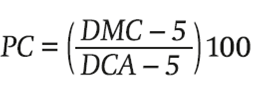 Donde PC = porcentaje de crecimiento, DMC = diámetro medio de la colonia (mm), 5 = diámetro del cilindro con micelios originalmente sembrados en el centro de la caja de Petri (mm) y DCA = diámetro de crecimiento del control sin fungicidas. Para la clasificación, se adaptaron los criterios empleados por Deahl et al. (1995b) y Shattock (1988), quienes califican a los aislados con porcentaje de crecimiento igual o superior a 60 % como resistentes al metalaxil, de 10 a 60 % como intermedios e inferior a 10 % como susceptibles. La comparación por categorías se realizó en un diseño completamente al azar (Statistical Analysis System [SAS Institute], 2004).