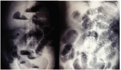 Una vez realizado el diagnóstico de intususcepción con el apoyo de estudio de tomografía, que es descrita como uno de los estudios diagnósticos de mayor utilidad34 y debido a la evolución del cuadro abdominal al agregarse datos de irritación peritoneal, se decidió realizar la laparotomía exploradora, y en el momento de encontrarse una tumoración con intususcepción de ciego se decidió la hemicolectomía ante la posibilidad de malignidad en la lesión encontrada8,29,31,37,38. La paciente pasó inicialmente a terapia intensiva por cifras bajas de hemoglobina, sin embargo su evolución posterior fue a la mejoría hasta el día de su alta a casa. Continuó en seguimiento en consulta externa, con un pronóstico bueno para la vida y para la función.