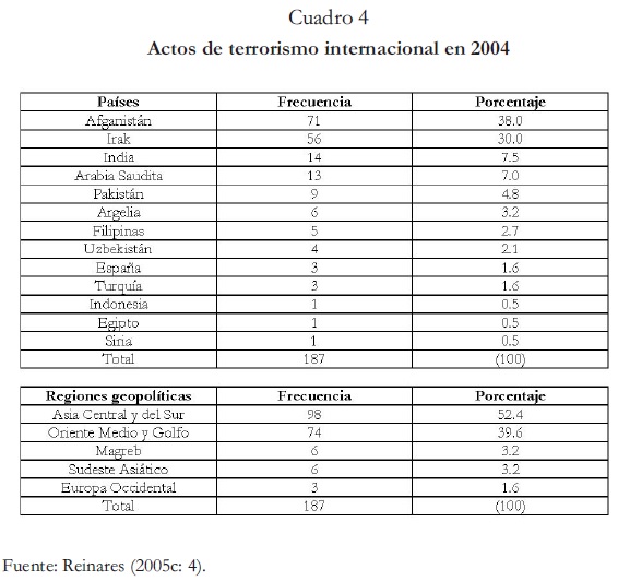 ---------- (2005c), "¿Es el Terrorismo Internacional como nos lo imaginábamos? Un estudio empírico sobre la Yihad Neosalafista global en 2004", en Panorama estratégico 2004/2005,11de julio, Madrid: Real Instituto Elcano. [ Links ]