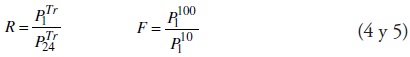 Paso 1) con base en la serie de lluvias máximas diarias anuales disponibles se obtienen las seis predicciones diarias (PDTr) y se transforman a precipitaciones en 24 h de duración al multiplicarlas por 1.13 (Weiss, 1964). Paso 2) con base en la altitud de la estación pluviométrica que se procesa y las relaciones regionales definidas (ecuaciones 1, 2 ó 3) se obtienen las seis predicciones de lluvia horaria (P1Tr). Paso 3) se calculan los seis cocientes lluviaduración (R) y el cociente lluviafrecuencia (F), definidos por las expresiones siguientes (Chen, 1983):