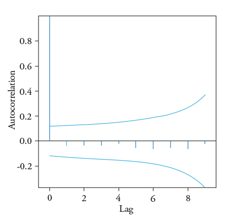 Figure 5 Function of autocorrelation of the residuals of the model, that included the modeling of the serial autocorrelation.