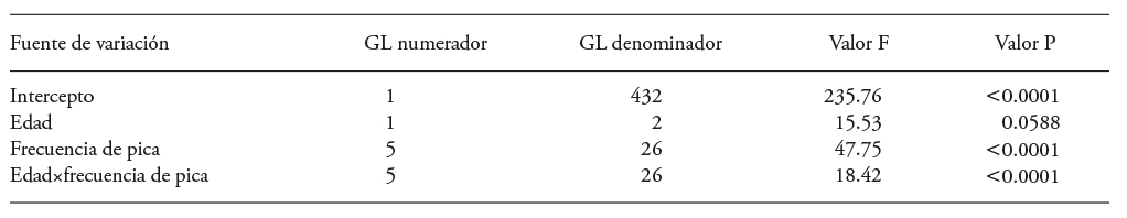 Table 4 Hypothesis test of the age, tapping frequencies and their interaction (fixed effects) that determines whether there is some effect between them