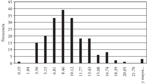 The histogram for the double-bounded WTP that excludes negative answers (Figure 3) -unlike the double-bounded WTP that includes all the answers (Figure 2)- shows a typical behavior of contingent valuation studies, i.e., WTP distribution approaches a normal distribution, where most of the results concentrate near the average. This aspect reinforced the selection of the WTP average for this kind of model.