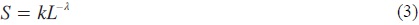 donde ks corresponde al índice de verticalidad, A es sustituto de la descarga (Q) y θ corresponde a la concavidad (Kirby y Whipple, 2001; Whipple, 2001). Una forma alternativa a la Ecuación 2 puede hacerse si A se sustituye por la distancia del canal medida a partir de la divisoria (L), ya que ésta a su vez guarda una proporcionalidad con Q (Goldrick y Bishop, 2007), de tal forma que:
