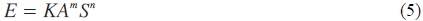 donde U equivale al levantamiento tectónico, K es un coeficiente dimensional de erosión, A corresponde al área de drenaje, el cual es un sustituto de la descarga del río (Q), y los exponentes (m y n) son valores dimensionales que provienen de las relaciones hidráulicas del drenaje y el esfuerzo cortante (Whipple y Tucker, 1999). De forma empírica se ha observado que bajo ciertas condiciones cercanas al estado de equilibrio, la pendiente en el lecho de los ríos se ajusta a una curva potencial de tal forma que (Moglen y Bras, 1995; Whipple, 2001):