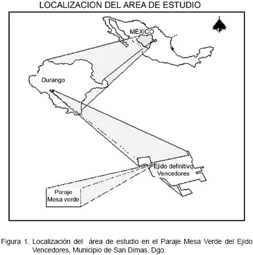 El objetivo del estudio fue evaluar 13 modelos matemáticos para la predicción del índice de sitio con información de sitios permanentes para la estimación precisa del potencial de producción de los bosques de Pinus durangensis Martínez en el Municipio de San Dimas, Durango, donde se ubicó el sitio experimental en la zona boscosa del Ejido Vencedores en el paraje denominado Mesa Verde. El Ejido se localiza al oeste de la ciudad de Durango, a una distancia aproximada de 197 km. Respecto a los puntos siguientes se describen de acuerdo con Soto (1990) y Valenzuela (2000).