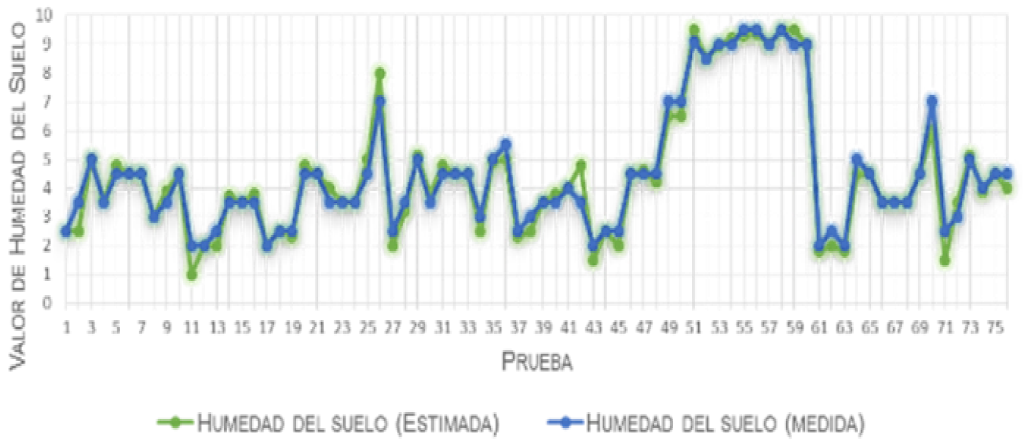Los modelos desarrollados para la estimación permiten describir la variabilidad espacial de la humedad en una región de tamaño moderado. Además, consideran las interacciones entre la humedad del suelo, las condiciones meteorológicas, las características del suelo y del cultivo. Los resultados, derivados de la validación de cada uno de los modelos creados, determinan que el error de estimación obtenido es adecuado y permite determinar el nivel de humedad minimizando las mediciones. El rango de estimación, en este trabajo, es de 1,5 km desde el punto de control primario.