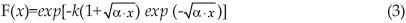 El tercer modelo probabilístico que se contrasta fue desarrollado por Etoh et al. (1987) para las lluvias diarias máximas anuales, fue designado SQRTETmax como abreviatura de squareroot exponential type distribution of the maximun y por ello se denomina distribución tipo exponencial de raíz cuadrada (TERC), su expresión es la siguiente: