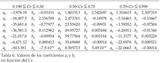para la cual los coeficientes ai están definidos en la tabla 6.