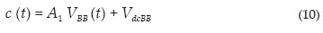 La señal de banda base c(t) está conformada por una señal de información de banda base VBB(t) de amplitud A1 y un voltaje DC VdcBB. Por otro lado, la señal de radio frecuencia e(t) está conformada por una señal de datos VDRF(t), con amplitud A2. En este trabajo la señal e(t) tiene una tasa de transmisión de 2.5 Gbps con una portadora de 10 GHz y fase de oscilación nula. La señal c(t) utilizada tiene una tasa de transmisión de 625 Mbps. El esquema de generación de señales para sistemas RoF usando combinación eléctrica de banda base y radiofrecuencia se modeló usando el software de simulación de sistemas ópticos VPI Transmission Maker, en el cual la función de campo obtenida para cada esquema se evaluó para diferentes valores de índice de modulación de banda base y de RF. La evaluación de la calidad de la señal generada se realiza mediante el factor de calidad Q, que se define como (Freude et al., 2012)