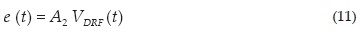 Nótese que en (17) se presenta un cambio de signo debido a un desfase de 180° generado por la configuración interferométrica del modulador, la cual contribuye a la reducción del fenómeno de chirp. Finalmente se obtiene una expresión para el campo de salida en función de los índices de modulación de banda base y radiofrecuencia para el modelo de generación de doble brazo (ecuación 18).