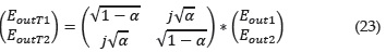 A partir del acoplador se determina la siguiente expresión para el campo de salida.