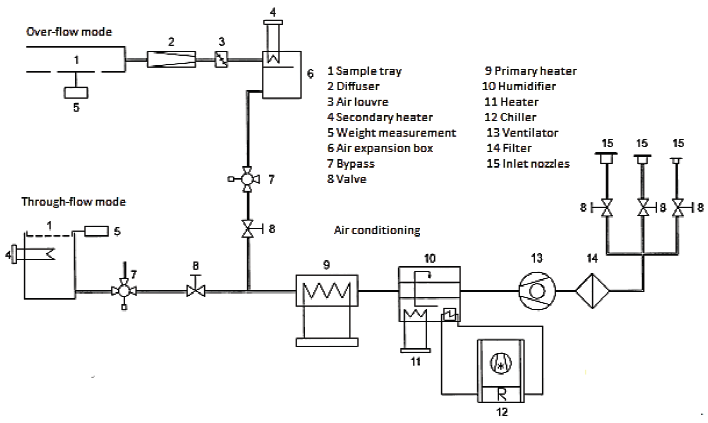 The high precision lab-scale dryer used for the pineapple drying (Figure 1) was designed by the department of Agricultural Engineering, University of Hohenheim (Stuttgart, Germany). In this system a wide range of operating parameters can be controlled. The main structure is divided in four units: