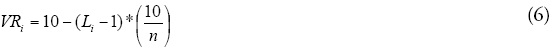 Donde VR es el valor de la respuesta i-ésima, que fluctúa entre 0 y 10; L, el lugar que ocupa la respuesta de mayor a menor, y n, el número de respuestas posibles.