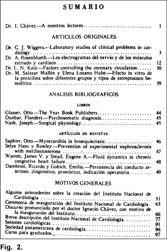 La comisión organizadora del Congreso depositó en los Drs. Ignacio Chávez e Ignacio González Guzmán la dirección de dicha publicación, quienes con el auspicio de la Universidad Nacional Autónoma de México y el Departamento de Salubridad Pública cumplieron su misión al publicar ininterrumpidamente esta revista bimestral hasta el último número (noviembre-diciembre) del año de 1943. Dentro del comité de redacción se encontraban eminentes médicos como Fernando Ocaranza, Francisco de P. Miranda, José Joaquín Izquierdo, Teófilo Ortiz Ramírez, Tomás G. Perrín (por México) y Pedro Escudero, Mariano R. Castex y J. F.C. Arrillaga por Argentina (Fig. 1).
