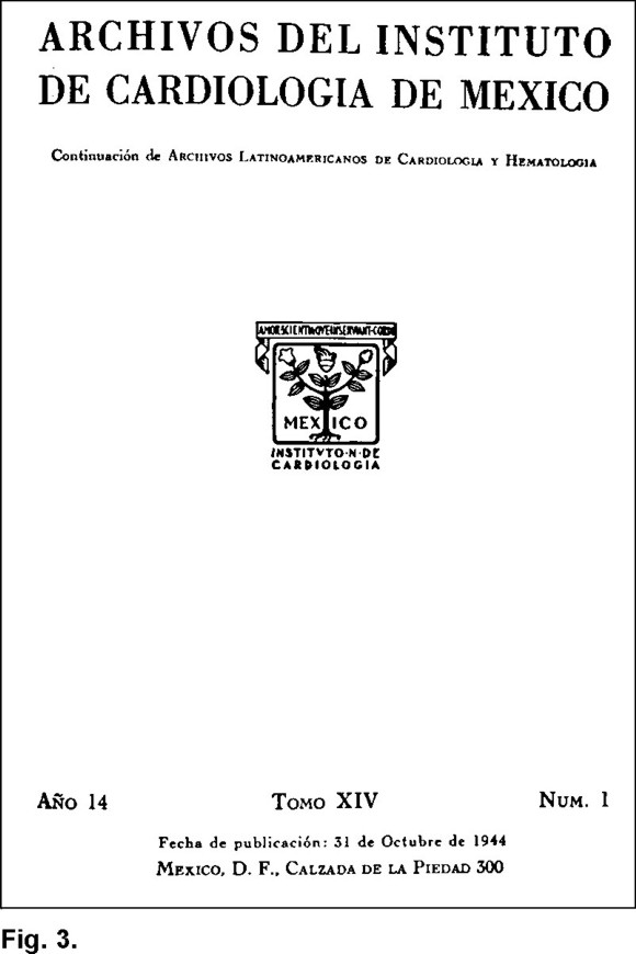 Esta revista vio, durante sus 13 años de publicación, el nacimiento de las Revistas Cubana, Argentina y Venezolana de Cardiología; así mismo, en ella publicaron sus investigaciones los más prestigiados cardiólogos y hematólogos no sólo de los países latinos, sino personalidades, ilustres de los Estados Unidos, Francia e Inglaterra, (Fig. 2). Con la fundación del Instituto Nacional de Cardiología de México en 1944, la revista cambió su nombre al de "Archivos del Instituto Nacional de Cardiología" (Fig. 3) fungiendo como órgano oficial del recién fundado Instituto. El primer número sale a la luz en agosto (julio-agosto) del año de 1944 como continuación de los "Archivos Latinoamericanos de Cardiología y Hematología». El Dr. Ignacio Chávez funge como director; en el Consejo editorial se destacan los nombres de Ignacio González Guzmán y Arturo Rosenblueth, el jefe de redacción fue el Dr. Isaac Costero y en el Comité de redacción se destacan Salvador Aceves, Teófilo Ortiz Ramírez, Mario Salazar Mallen, Demetrio Sodi Pallares y Manuel Vaquero.