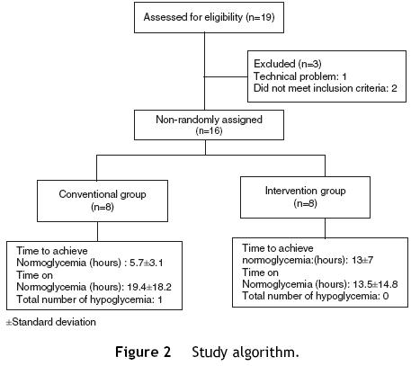 Results: We observed a statistically significant difference in the mean time for achieving normoglycemia, favoring the conventional group with a P = 0.02.