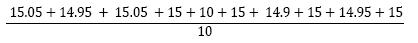 =(15.05+14.95+... +14.95+15)*1/10;
