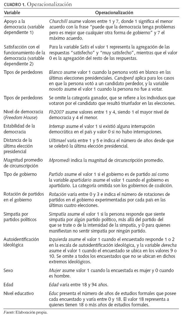 Perdedores/ganadores y la legitimidad democrática: formulación de hipótesis y operacionalización de variables