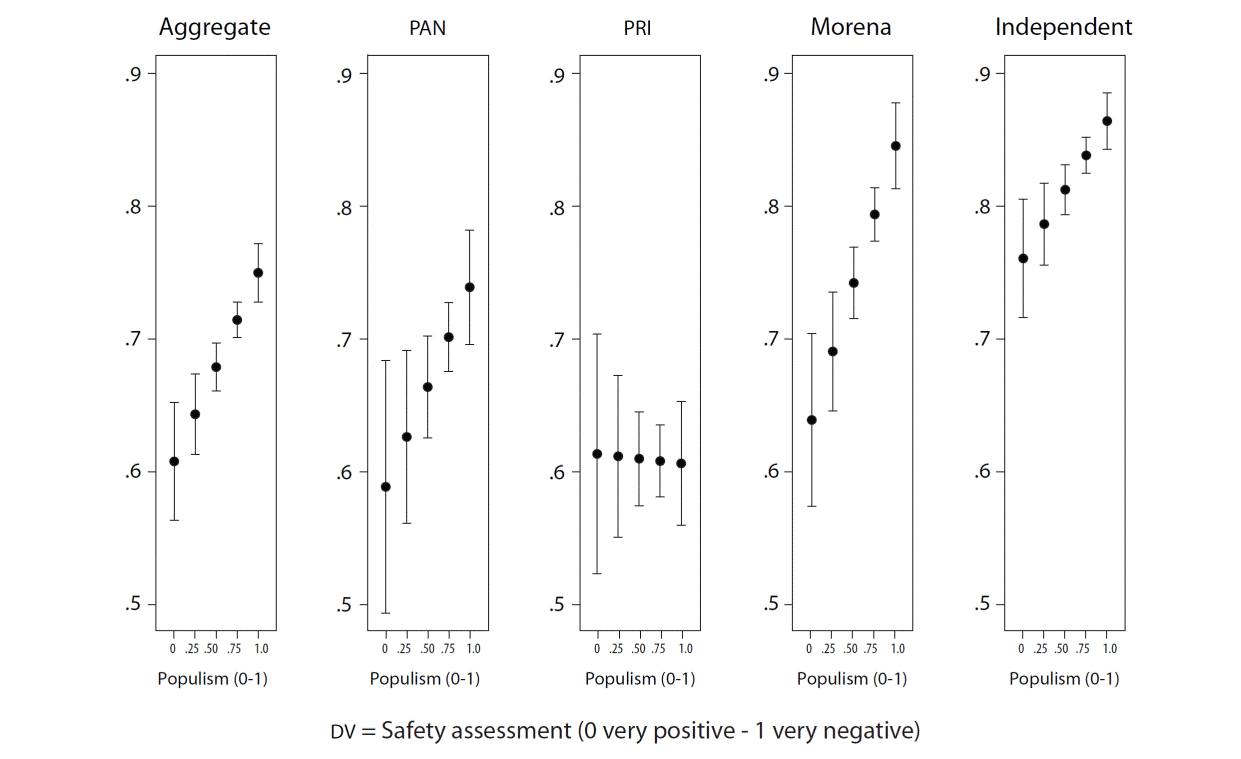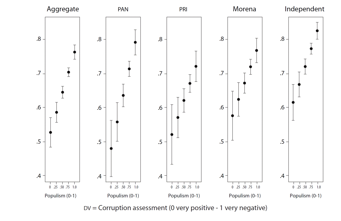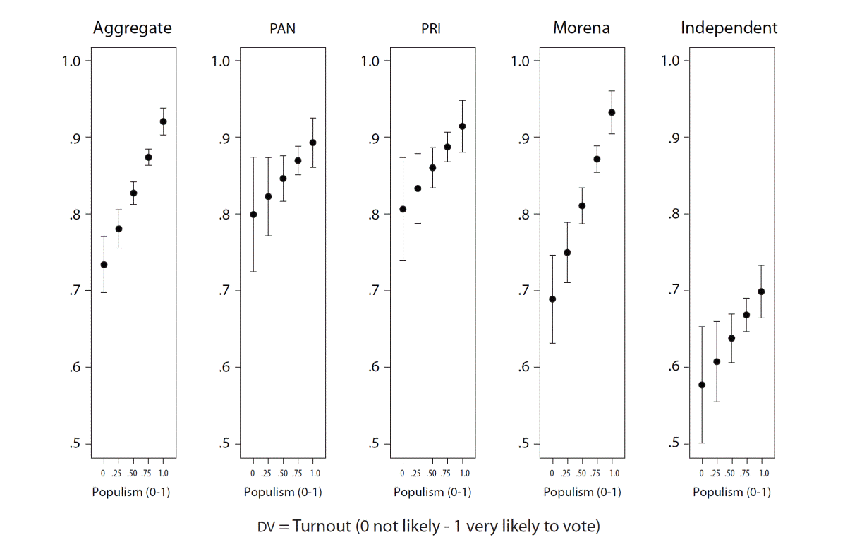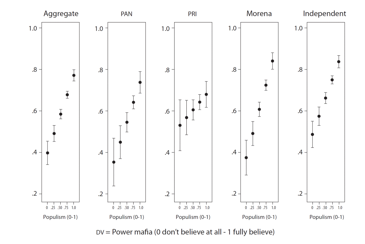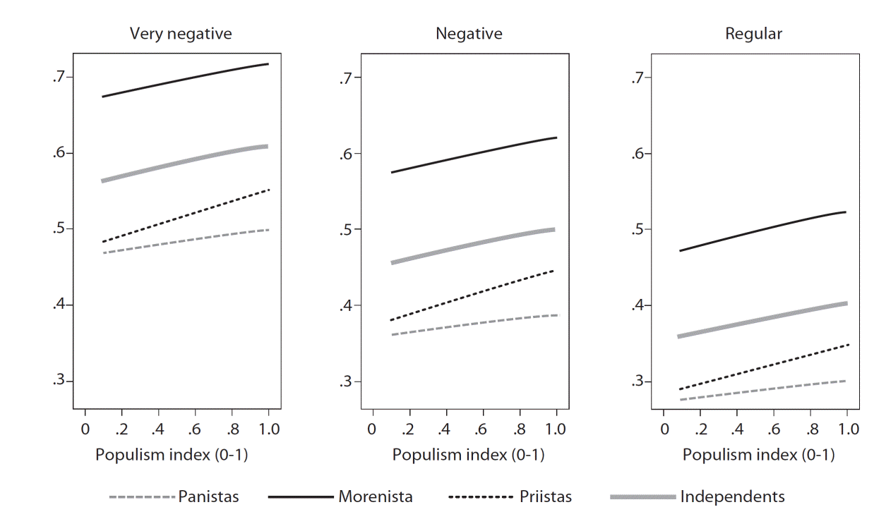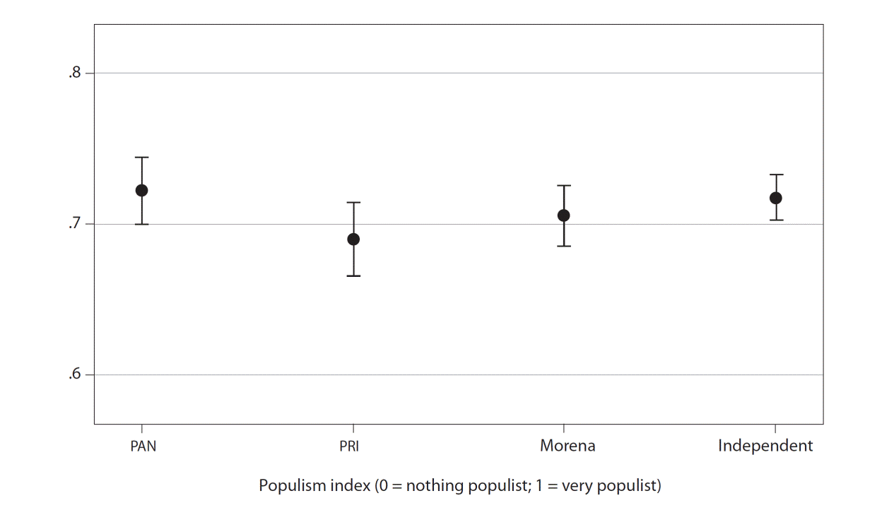 Source: National Electoral Study, CIDE-CSES, 2018 (Beltrán, Ley and Castro Cornejo, 2020). Note: dependent variable = populism index (from 0 to 1).
