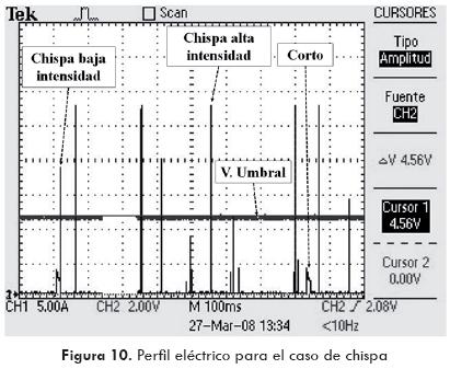 El trabajo experimental comenzó con la identificación de los perfiles de descarga eléctrica entre el electrodo y la pieza de trabajo. Para identificar estos perfiles se utilizó un sensor de corriente conectado a un osciloscopio (Tektronix A622) para monitorear el tipo de perfil eléctrico. Los tipos de perfil identificados son: corto circuito, arco eléctrico y chispa.