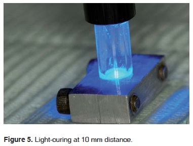 Many studies have been conducted with the aim of determining the efficiency of pits and fissure sealants when considering their viscosity,17,22,23 their filling material,2,22 comparing sealants with and without pigments,2,17 comparing self-curing and light-curing sealants, comparing different light sources for photo-curing,2,6,17,24 comparing photo-curing time6,17,25-27 as well as comparing different preparation techniques for enamel surface (acid etch, abrasive air with acid etch, enameloplasty with acid etch).2,22,23 Nevertheless, studies conducted in order to determine LED lamps efficiency have not taken into consideration the distance between light source and material to be light-cured. Therefore, the present study offers a new research line.