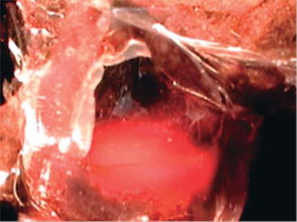 Figura 4 Imagen del seno maxilar que fue infi ltrado con la sustancia pigmentada con eosina.
