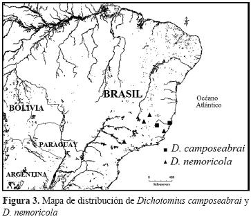 Distribución. Se distribuye en Brasil en los estados de Espírito Santo, Minas Gerais y São Paulo (Fig. 3).