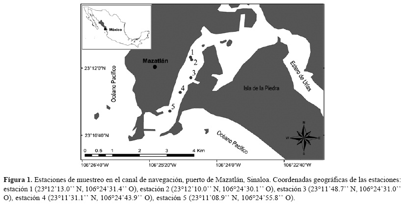 El puerto de Mazatlán está situado en la parte baja e intermedia del sistema lagunar costero Estero de Urías en el sureste del golfo de California (Fig. 1).