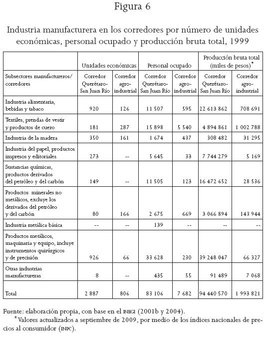 En esta discusión, habrá que ver la dinámica de otra forma, pues por un lado la importancia industrial del municipio de San Juan del Río es poco reconocida en los análisis de la megalópolis de la Ciudad de México, pese a su mayor cercanía física con ella, y en su lugar se considera más a Querétaro; y por otro, la importancia económica y territorial de San Juan del Río se incrementa si se incluye como parte de un corredor industrial que tiene a la zona metropolitana de Querétaro en el otro extremo, que en conjunto con otros municipios albergan la mayor cantidad de establecimientos manufactureros y de valores del estado; también, habrá que prestar atención a lo señalado por Delgado, respecto a que la ciudad de Querétaro representa perfiles diversos, entre ellos constituye un punto de articulación entre varias regiones y corredores industriales entre la capital de la nación y el Bajío y occidente del país, que identifica como un centro articulador "entre regiones con un intersticio importante".5 En esa dirección, tal vez la perspectiva menos polémica es ver los procesos económicos de Querétaro como una parte articuladora de un corredor industrial amplio entre la Ciudad de México y bifurcaciones hacia el centro, norte y occidente del país, sin soslayar su propio crecimiento regional.
