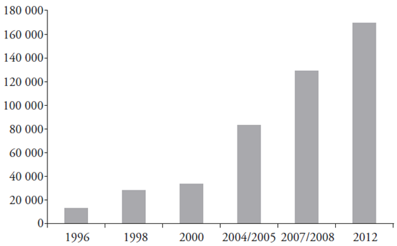 Figure 1 Mexico. Number of producers under the organic production system (1996-2012).