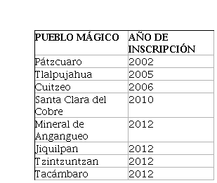 | PUEBLO MÁGICO | AÑO DE INSCRIPCIÓN |