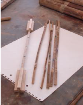 Se tomaron los especímenes de la parte inferior o cepa (3 piezas), parte media o basa (9 piezas) y parte superior o sobrebasa (9 piezas) de los culmos. Se marcaron con las letras C, B y SB respectivamente, desechándose 4 piezas por estar hendidas, agrietadas y contener perforaciones por ataque de insectos.