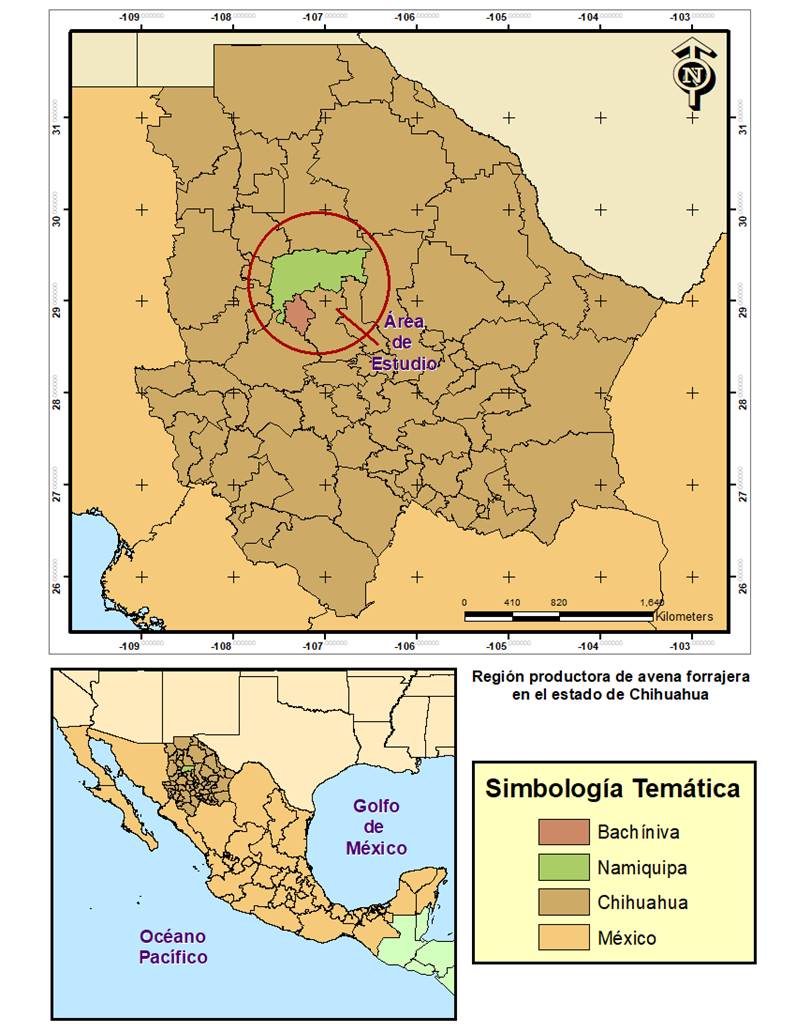 Figura 1 Región noroeste del estado de Chihuahua productora de avena forrajera de temporal.