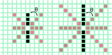 Debido a que la red vascular puede presentar segmentos de distintas longitudes, la detección con una sola escala presentará un desempeño bajo. Sin embargo, esta dificultad ha sido abordada por Nguyen et al. (Nguyen et al., 2013) proponiendo el uso de plantillas construidas con múltiples escalas de longitud L , incrementando así la precisión con la que los vasos sanguíneos son detectados. En la Fig. 2, se ilustran dos plantillas construidas a diferentes escalas. El área sombreada en negro se refiere a la orientación original de las plantillas, mientras que el sombreado en gris indica el resultado de orientarlas a 45° y 90°.
