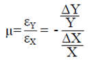 Once known deformation, Poisson's coefficient is calculated as:
