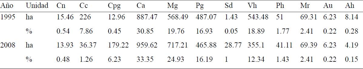Table 1 Area occupied by type of land use in 1995 and 2008.