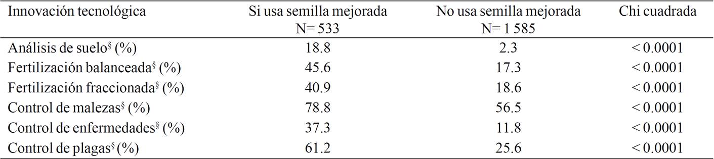 Regarding innovations, the percentages are higher in farmers using improved seeds of maize, compared to farmers using native seed (Table 2).