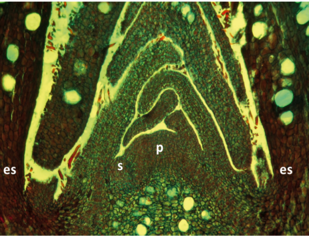 Once the DIF date was identified, the anatomical characterization of the buds that reached this stage of development was performed. The buds were extracted from the FAA and washed with tap water and then dehydrated with alcohol and xylene. Subsequently, they were included in paraffin (Ruzin, 1999). Longitudinal anatomical sections were obtained with a rotating microtome (HM 350S, Walldorf, Germany) and 8 µm thick, mounted on slides and stained with safranin and fixed green (Ruzin, 1999). At the end they were applied balm from Canada and were protected with coverslips. The sections were photographed with a digital camera (Canon Power Shot G11, NY, USA) mounted on an optical microscope (Zeiss HBO 50/AC, Carl Zeiss, Göttingen, Germany).