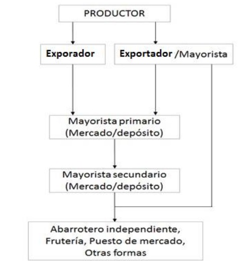Wholesalers are those marketing agents that operate with large quantities (tons) of products, including a large number of agents with very varied characteristics, depending on the product and the place. There are also the collectors (secondary wholesaler), who buy the product directly from the farmers; they generally collect small volumes (10-50 kg) and transport them to the consumption or processing centers, they can work with a wholesaler or processor. Finally, there are retailers (groceries, fruit sellers, among others), who are marketing agents whose most important characteristic is selling to retail consumers, being the only intermediary (Rodríguez-Cardoso, 2000).