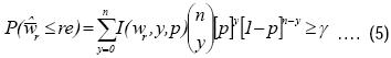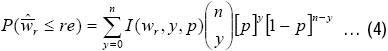 Donde I(wr,y,p) es una variable indicadora que muestra si la ARCIC actual calculada con la ecuación (1) no es más grande que re, y es considerada una variable aleatoria puesto que no sabemos el valor exacto de p.