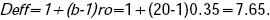 Donde: nm es el tamaño de muestra modificado o preliminar bajo muestreo aleatorio simple (proporcionado por los dos pasos anteriores usando las ecuaciones (3) y (5), Deƒƒ=1+(b–r)ro es el efecto de diseño y para calcularlo se necesita conocer ro y b. Valores aproximados de ro pueden obtenerse de una muestra piloto o de resultados de encuestas previas, considerando que ro variará de región a región y de encuesta a encuesta(15,16).