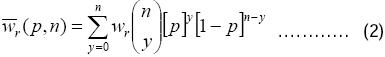 Donde wr es la ARCIC, que se calcula con la ecuación (1), para Y = y individuos positivos, dados la proporción (p) y el tamaño de muestra (n).