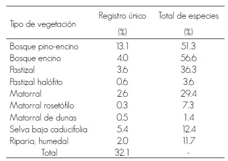 Table 3. Percentage of medicinal plants registered by type of vegetation in the state of Chihuahua.