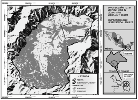 From the surface of the watershed, 42 % have conflicts in land use because productive activities (maize, beans and coffee) they are practiced in areas that exceed the limits of slopes recommended in the suitability map.